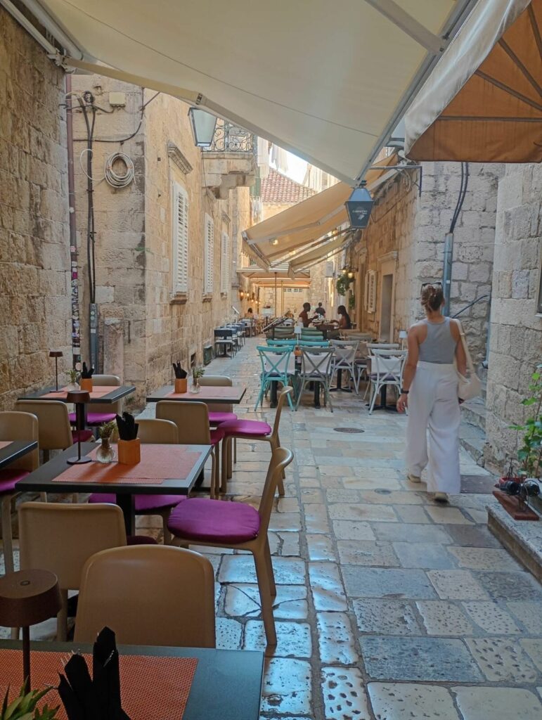Dopo una breve navigazione arricchita da attività acquatiche: paddle, snorkeling… Abbiamo attraccato a Hvar, città famosa per il suo sole eccezionale. Appena sbarcate, siamo state accompagnate da una guida locale appassionata, che ci ha condotte alla scoperta dei tesori nascosti e della storia millenaria della città. Non è stata una semplice visita turistica, ma una vera e propria immersione nell’atmosfera unica dell’isola, arricchita da racconti locali, profumi di cucina dalmata e l’ospitalità genuina dei suoi abitanti.